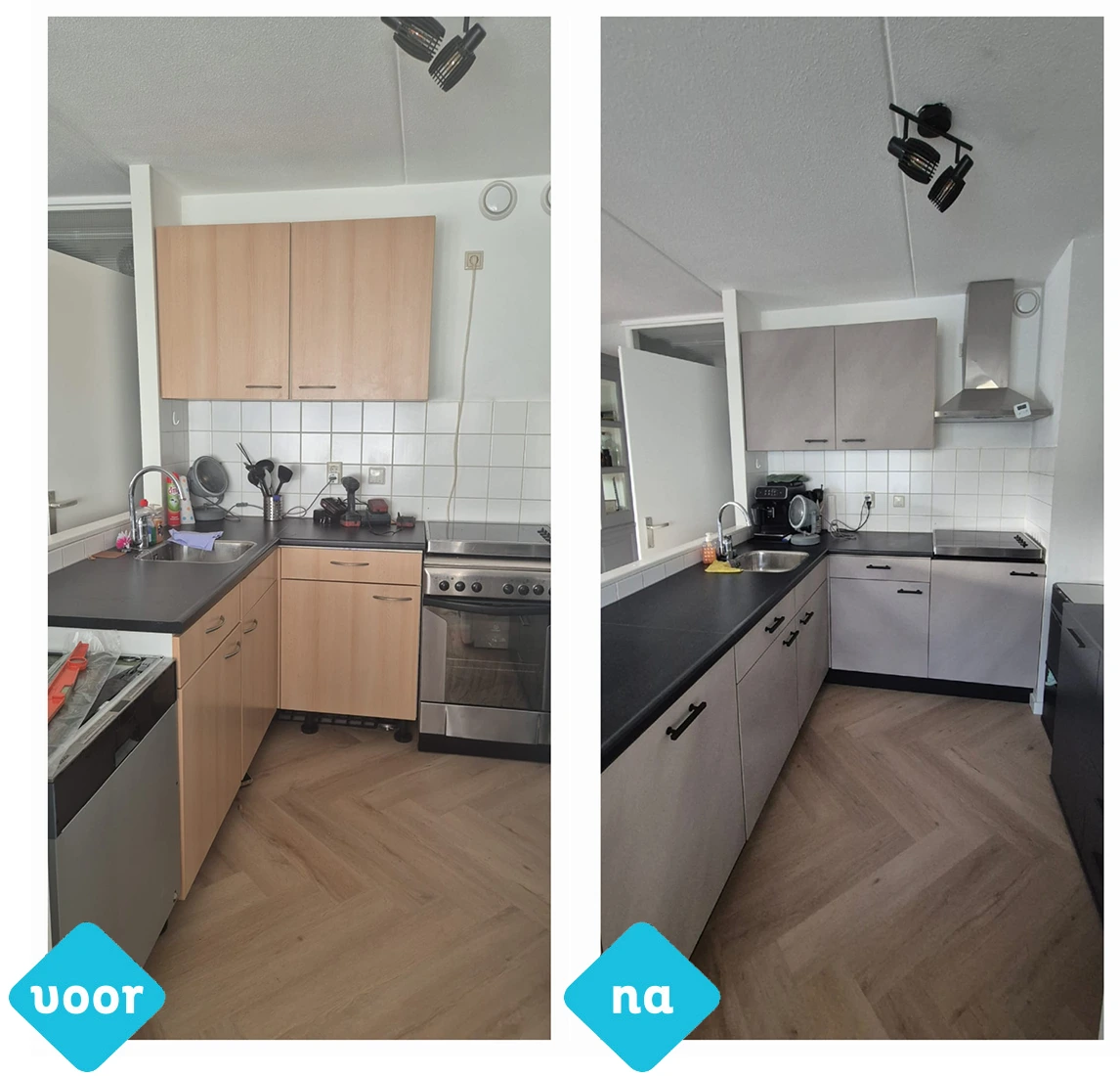 - Renovatie van panelen en vaste keukenonderdelen